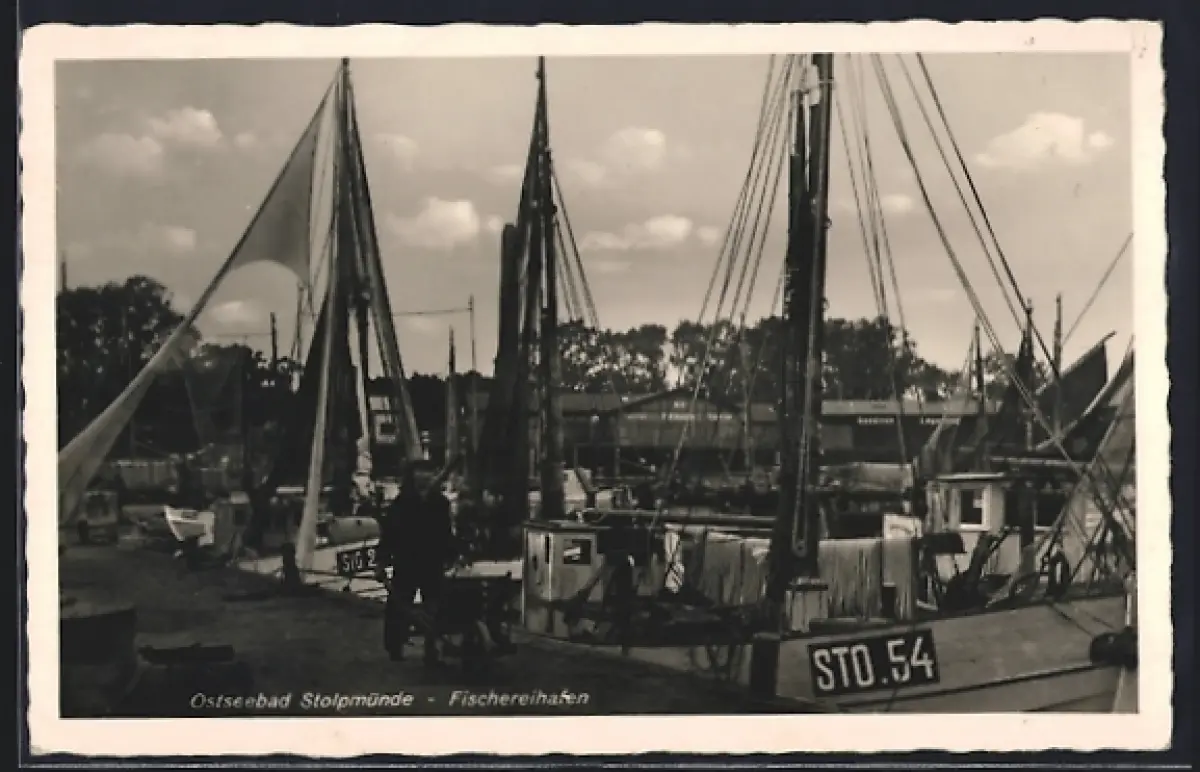 AK Stolpmünde, Fischreihafen, Fischkutter am Kai