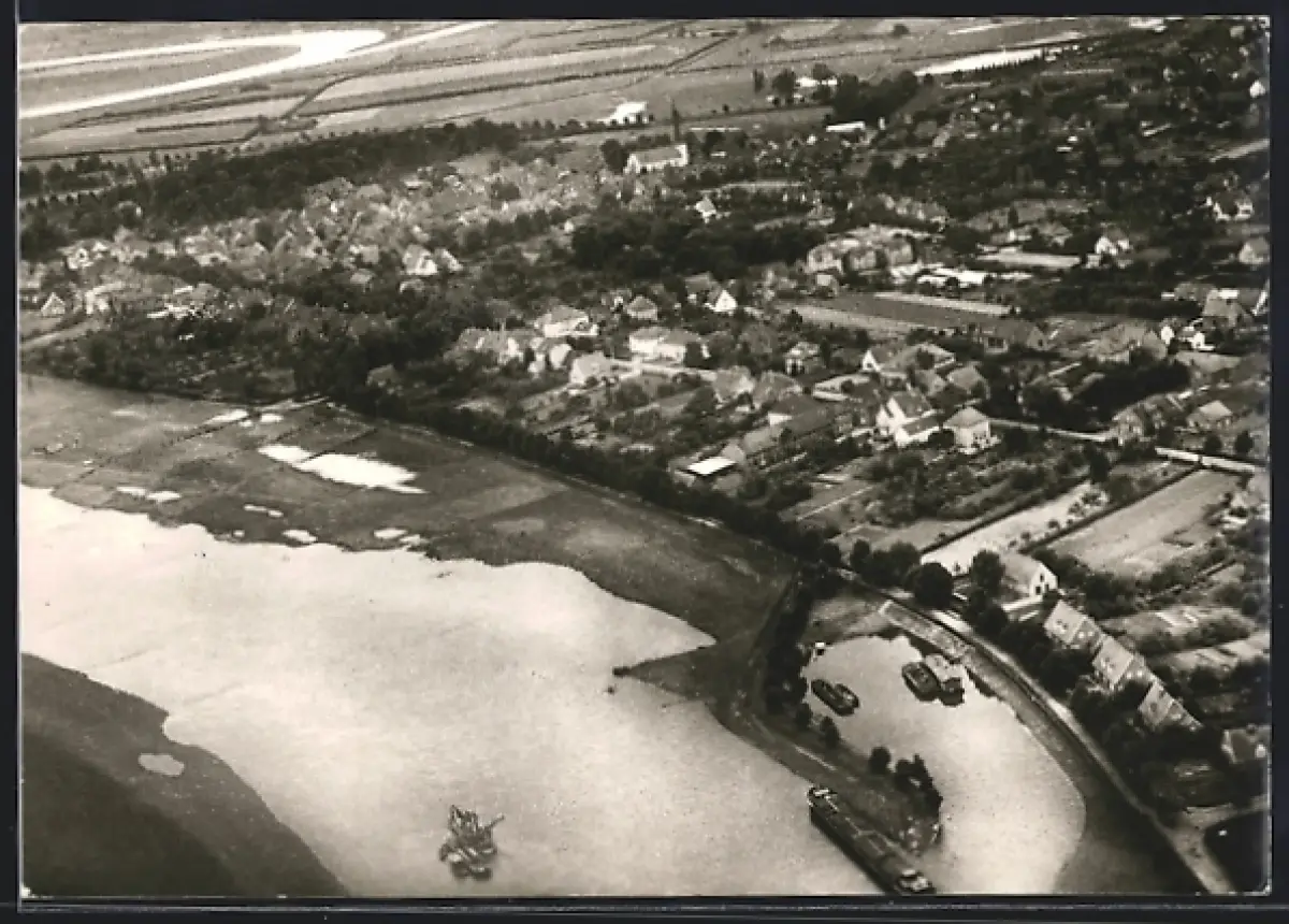 AK Stolzenau, Luftaufnahme, Weser, Ortsansicht
