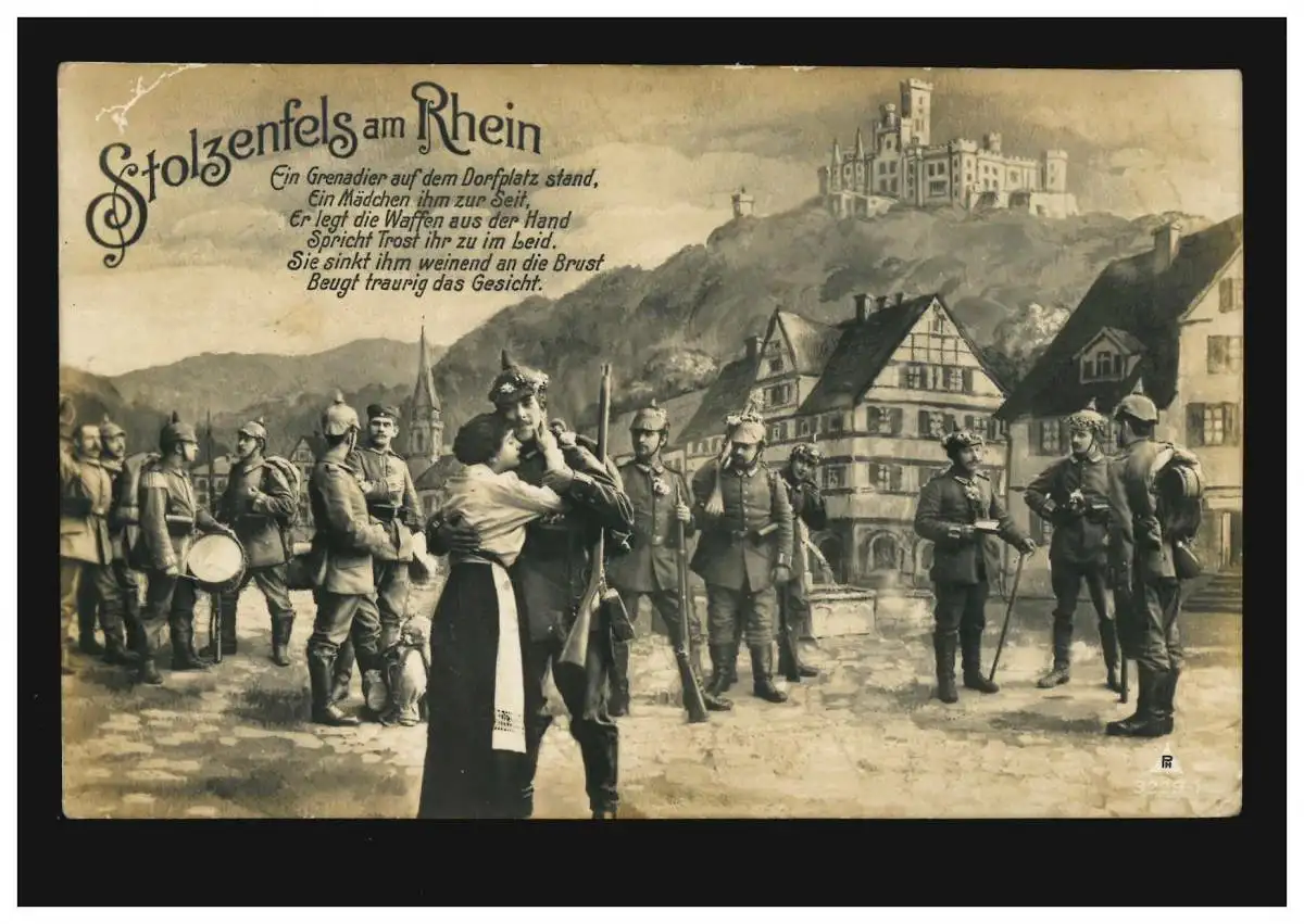 AK Stolzenfels am Rhein Der Abschied, Feldpost verzögert BS 9. I.R. 68 - 16.6.15