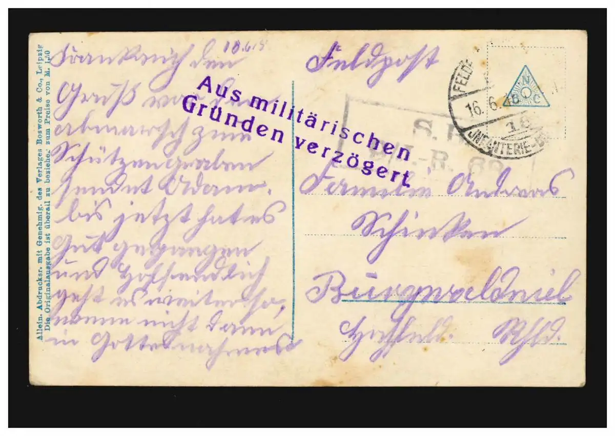 mit Zweizeiler "Aus militärischen Gründen verzögert" nach Burgwaldniel