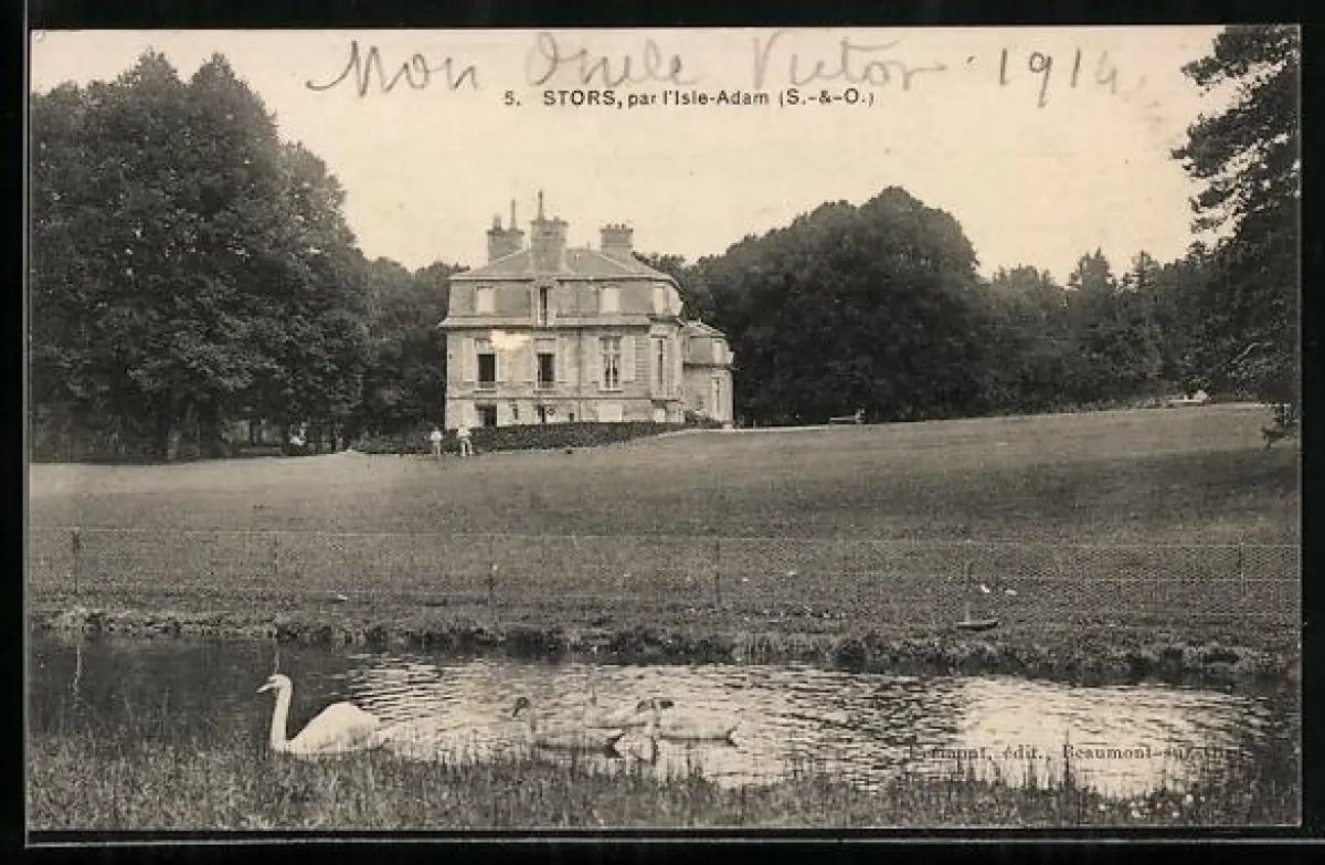 AK Stors /L`Isle-Adam, Vue du château avec cygnes sur l`étang