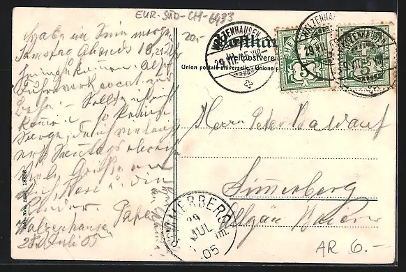 gelaufen 1905, Eckknick rechts unten, guter Zustand
