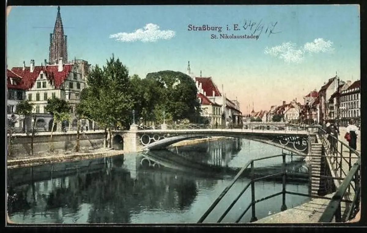 AK Straaburg i. E., St. Nikolausstaden mit Flusspartie