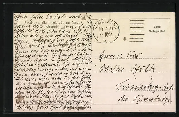 alte Ansichtskarte, gelaufen 1929, Briefmarke entfernt, guter Zustand