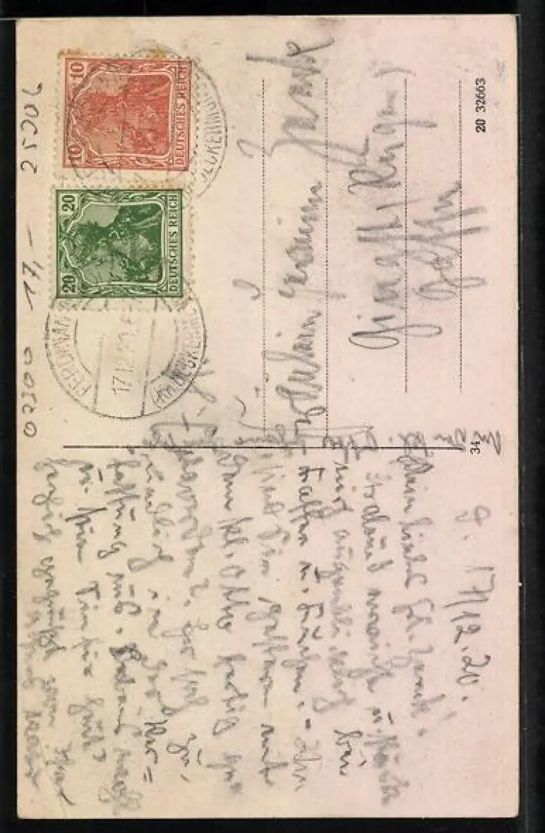 alte Ansichtskarte, gelaufen 1920, Eckknick re. unten, guter Zustand