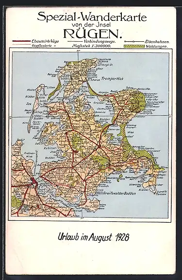 AK Stralsund, Landkarte von der Insel Rügen