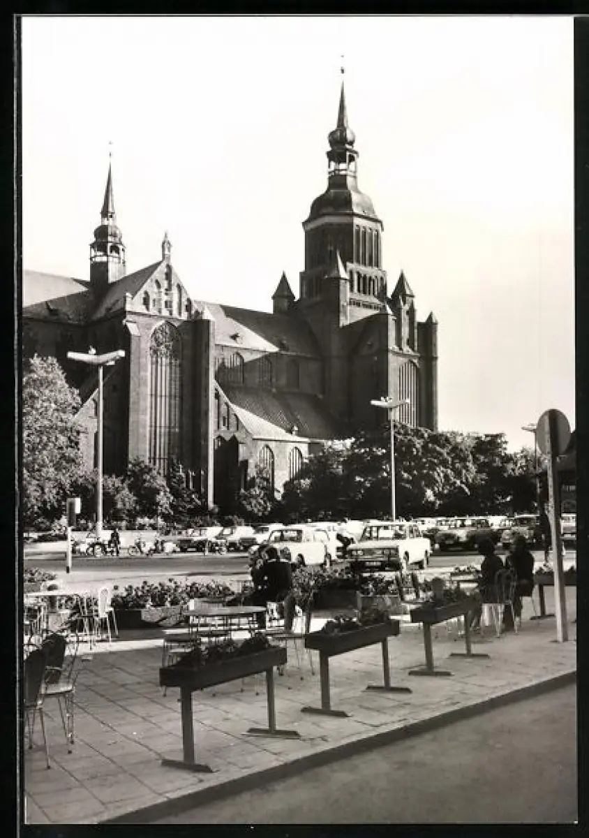 AK Stralsund, Marienkirche, Aussenansicht vom Leninplatz