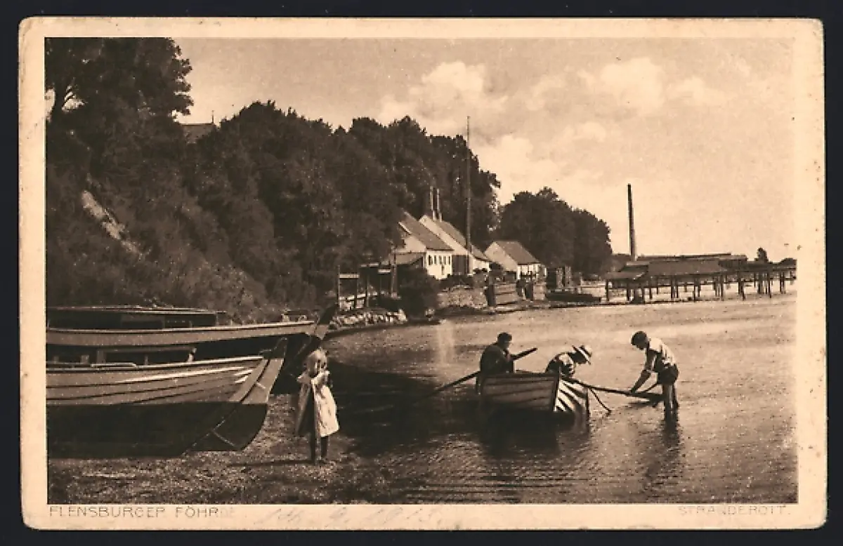 AK Strandeot, Flensburger Föhrde, Uferpartie mit Booten