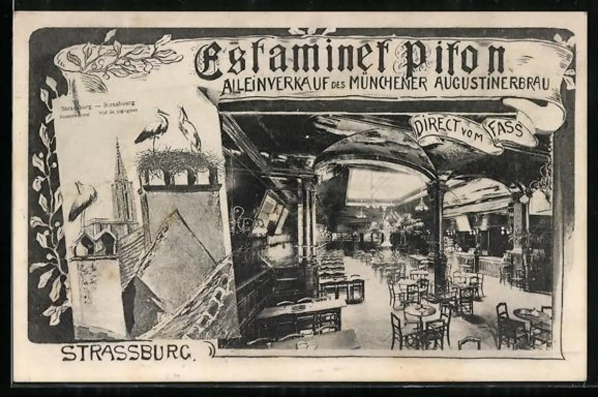AK Strassburg, Bierhalle Piton, Innenansicht, Storchennest, Blumen