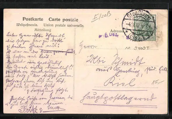 gelaufen 1912, Eckknick oben li., guter Zustand