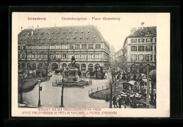 AK Strassburg, Gutenbergplatz, Gänseleberpasteten-Fabrik