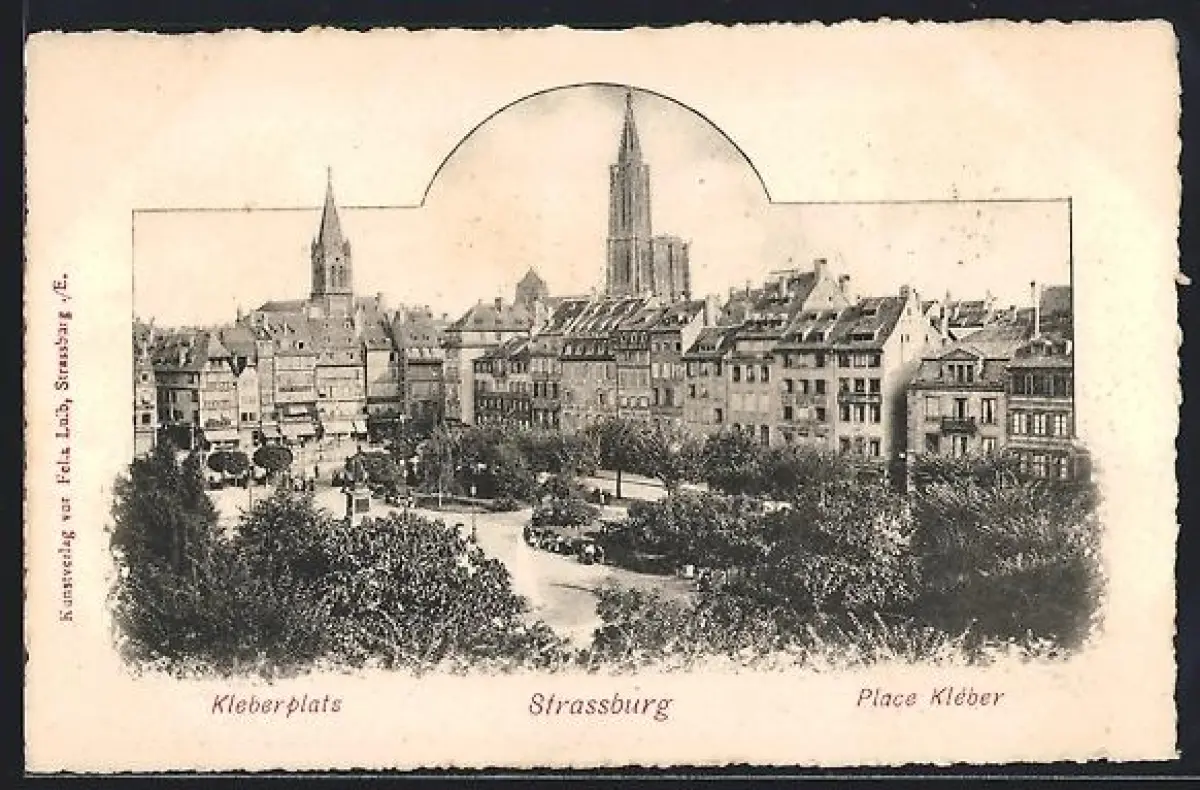 AK Strassburg, Kleberplatz aus der Vogelschau, mit Münster