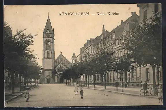 AK Strassburg-Königshofen i. Els., Lotharstrasse mit Katholischer Kirche & Strassenpartie