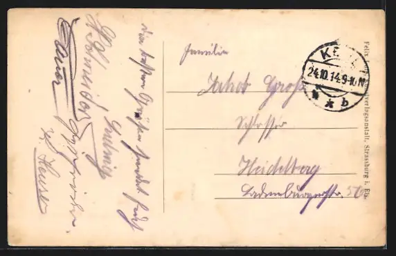 alte Ansichtskarte, gelaufen 1914, Eckknick oben rechts, Stempelspur, guter Zustand