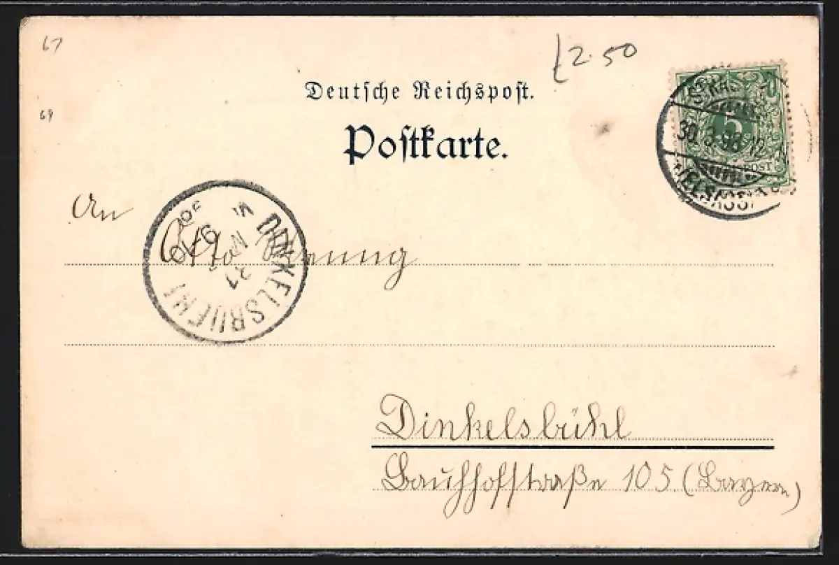 alte Ansichtskarte, gelaufen 1898, Stempelspur, guter Zustand