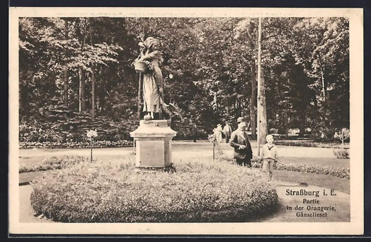 AK Strassburg, Partie in der Orangerie mit Gänseliesel
