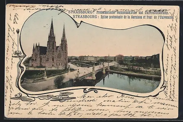 AK Strassburg, Protestantische Garnisonskirche und Universitätsbrücke