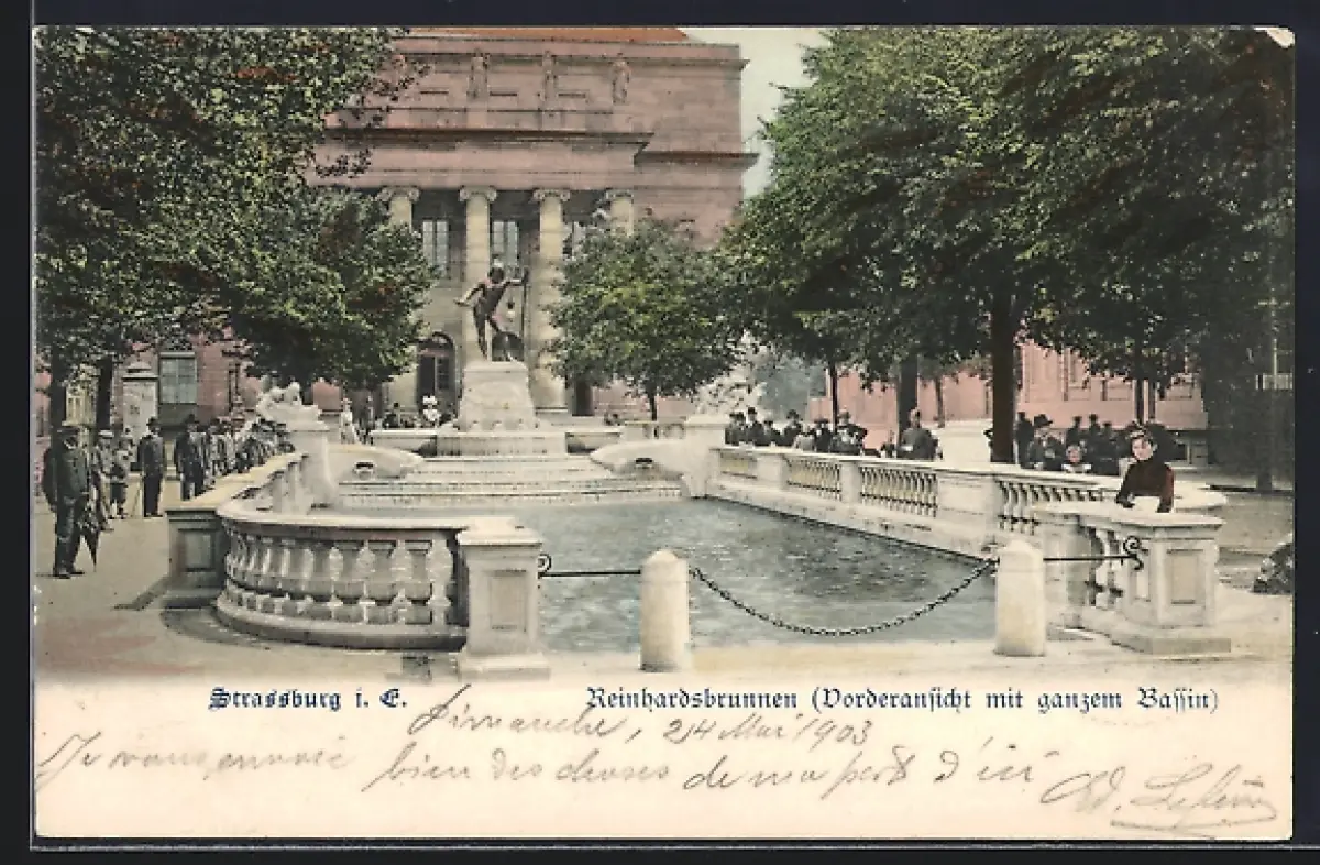AK Strassburg, Reinhardbrunnen, Vordersicht mit ganzem Bassin