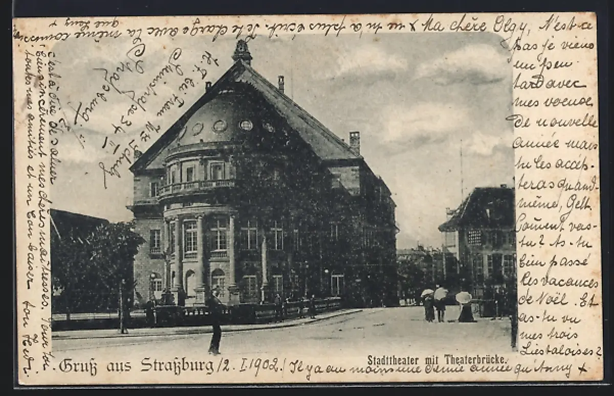 AK Strassburg, Stadttheater mit Theaterbrücke
