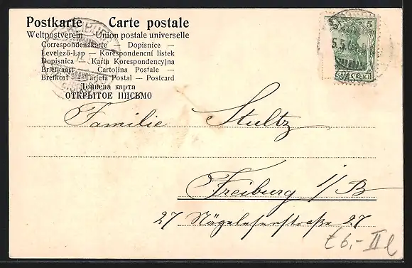 alte Ansichtskarte, gelaufen, Briefmarke entfernt, guter Zustand