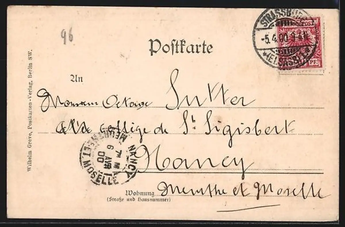 alte Ansichtskarte, gelaufen 1900, Eckknick oben li., guter Zustand
