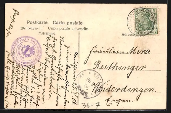 alte Ansichtskarte, gelaufen 1906, guter Zustand