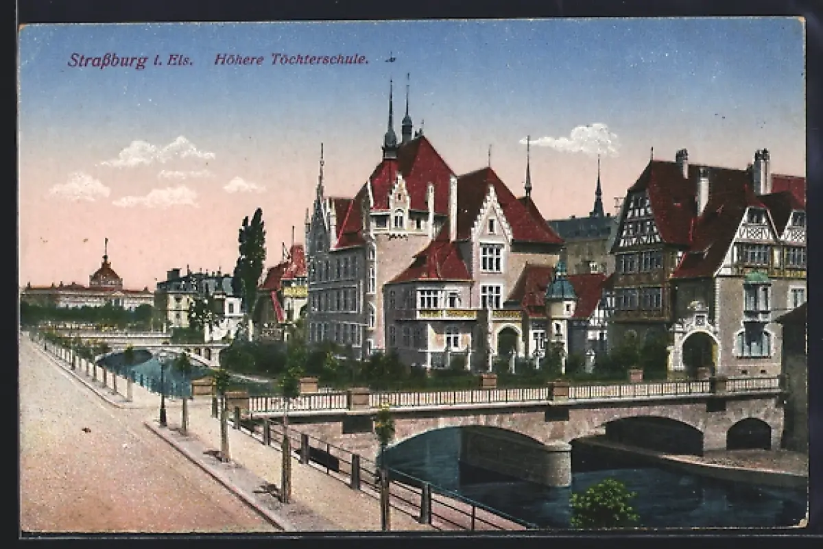 AK Strassburg i. Els., Höhere Töchterschule mit Brücke