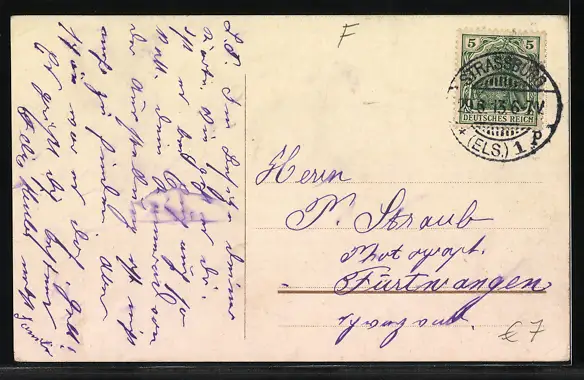 gelaufen 1913, Eckknicke oben re. und unten li., guter Zustand