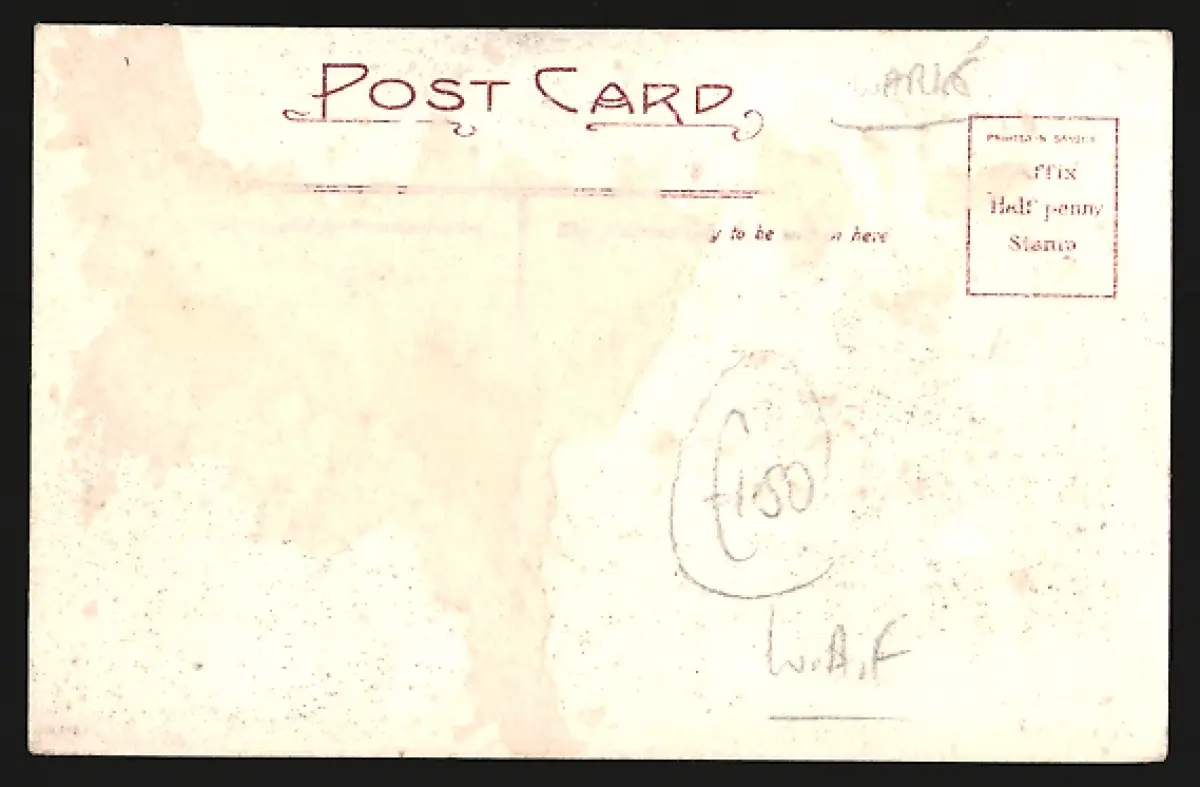 alte Ansichtskarte, ungelaufen, rückseitig Klebe- und Papierreste, rückseitig Oberflächenschaden
