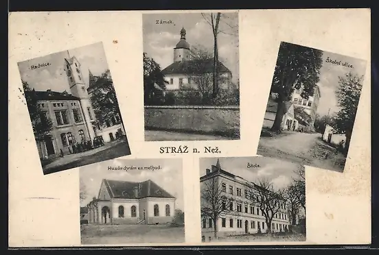 AK Stráz n. Nez., Zamek, Skolni ulice, Radnice