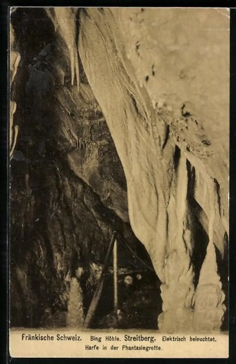 AK Streitberg /Fränkische Schweiz, Bing-Höhle, Harfe in der Phantasiegrotte