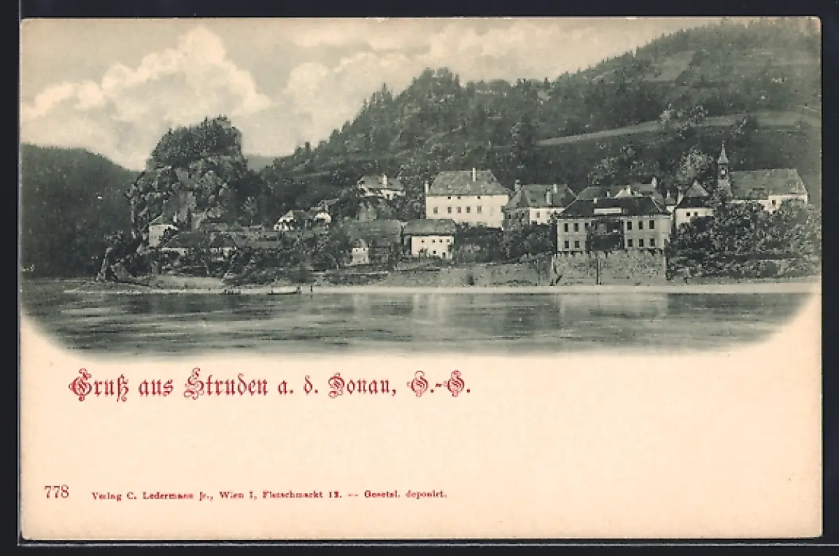AK Struden a. d. Donau, Ortsansicht vom Fluss aus
