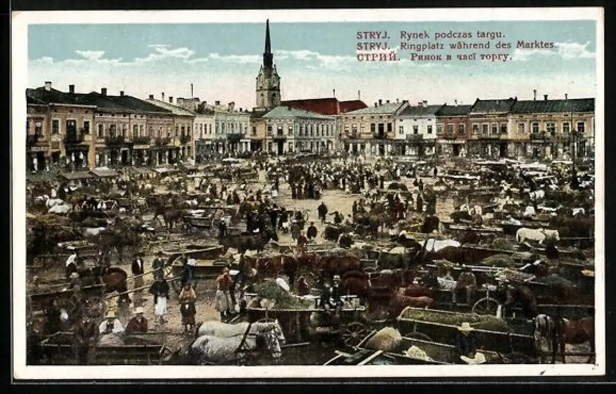 AK Stryj, Ringplatz während des Marktes