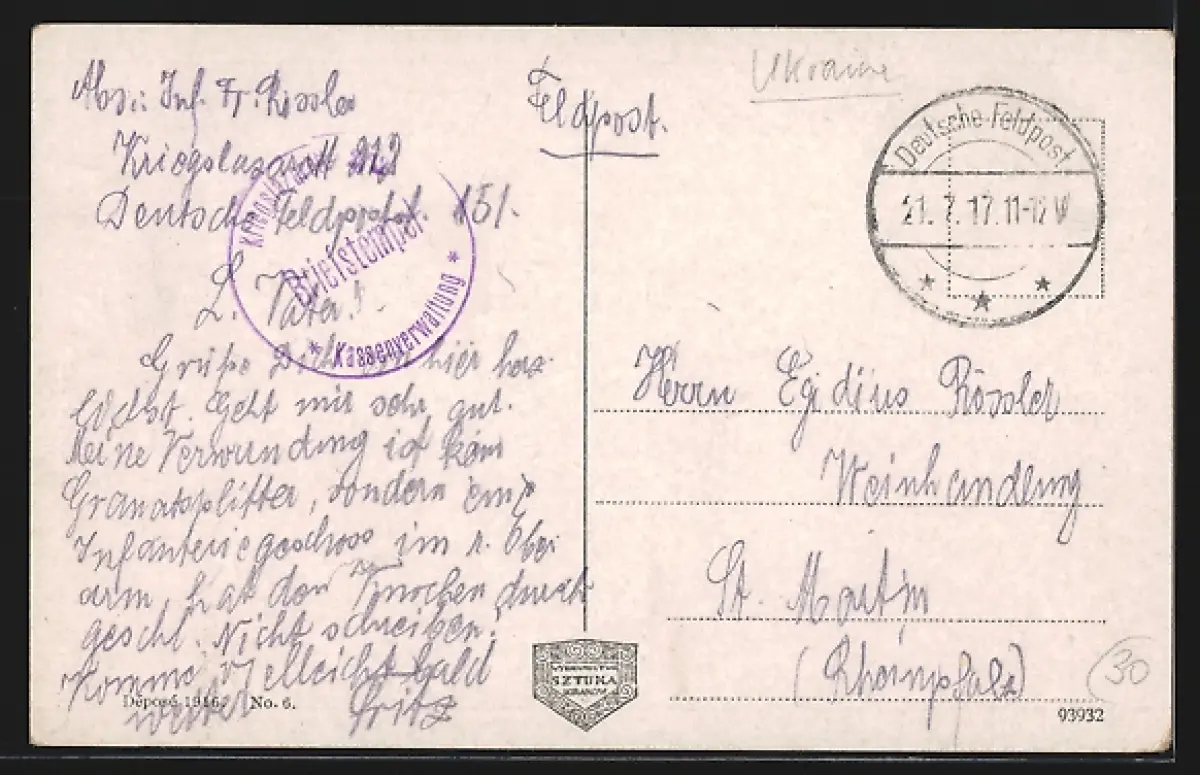 alte Ansichtskarte, gelaufen 1917, guter Zustand