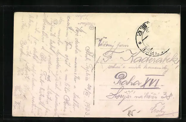 gelaufen 1933, Briefmarke entfernt, guter Zustand