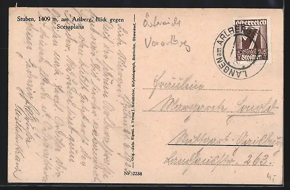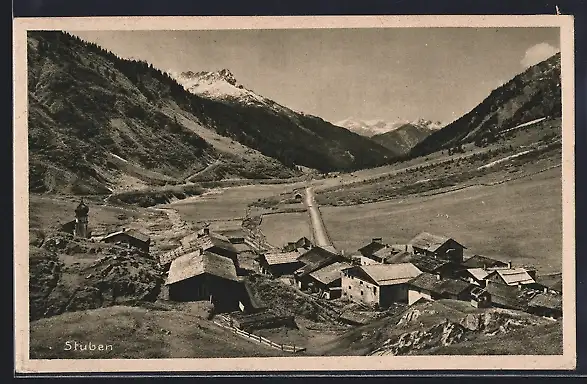 AK Stuben am Arlberg, Ortsansicht am Scesaplana