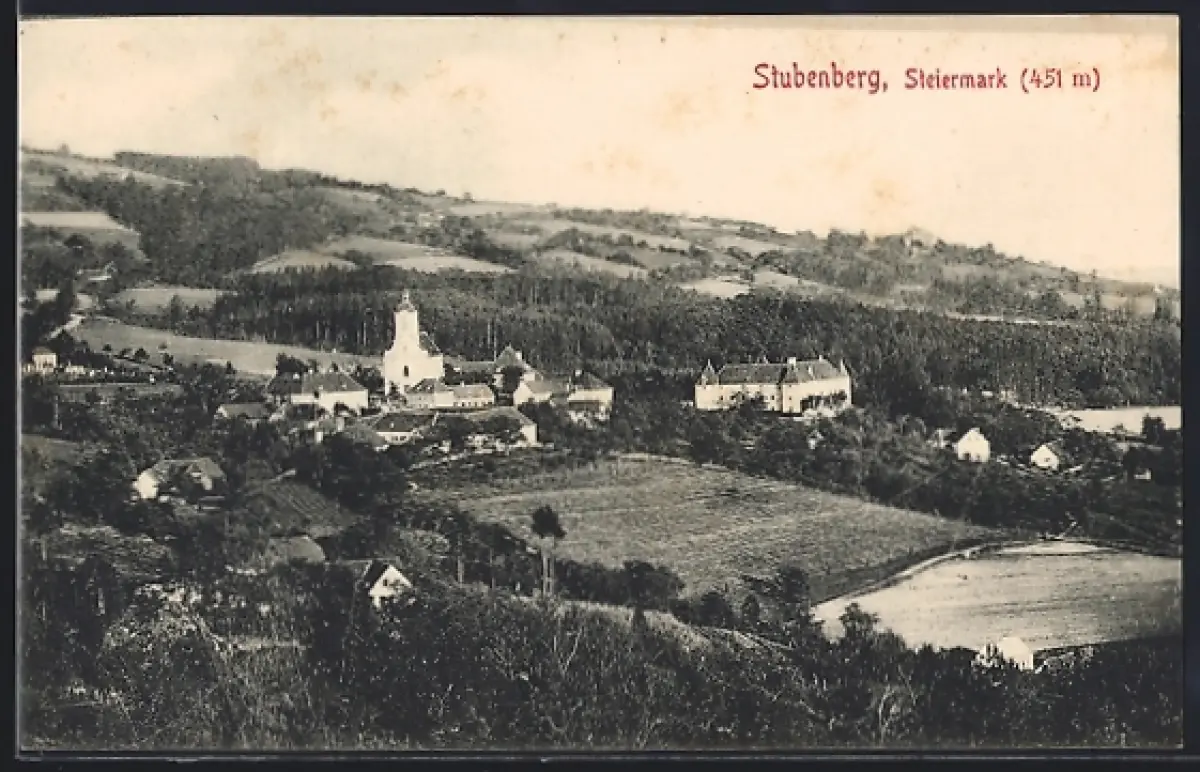 AK Stubenberg /Steiermark, Ortsansicht vom Berghang aus