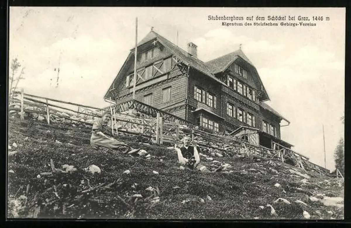 AK Stubenberghaus, ein Pärchen sitzt am Hang