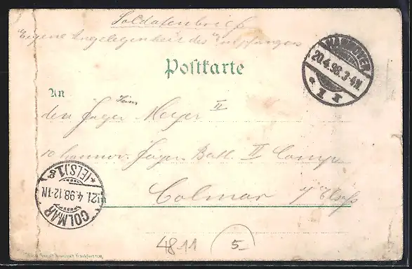 alte Ansichtskarte, gelaufen 1898, Eckknick re. oben, Bugspur re. vertikal, guter Zustand