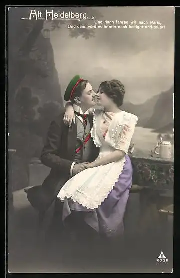 AK Student mit Tellermütze mit seiner Liebsten auf dem Schoss