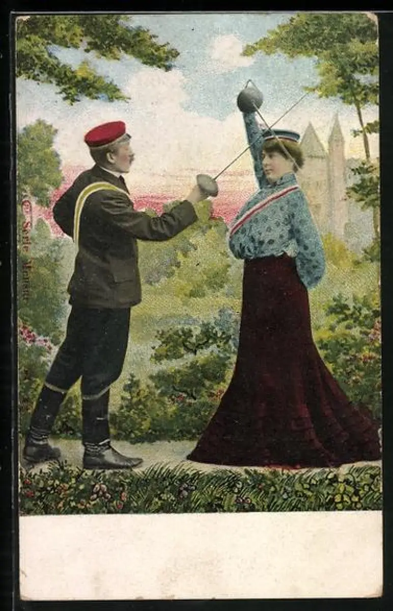 AK Student u. Studentin beim Fechten vor Turmkulisse