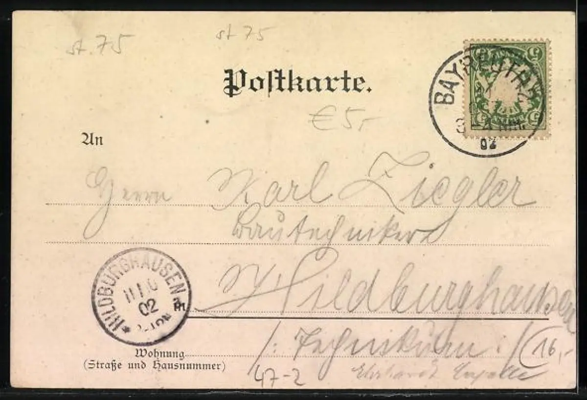 alte Ansichtskarte, gelaufen 1902, guter Zustand