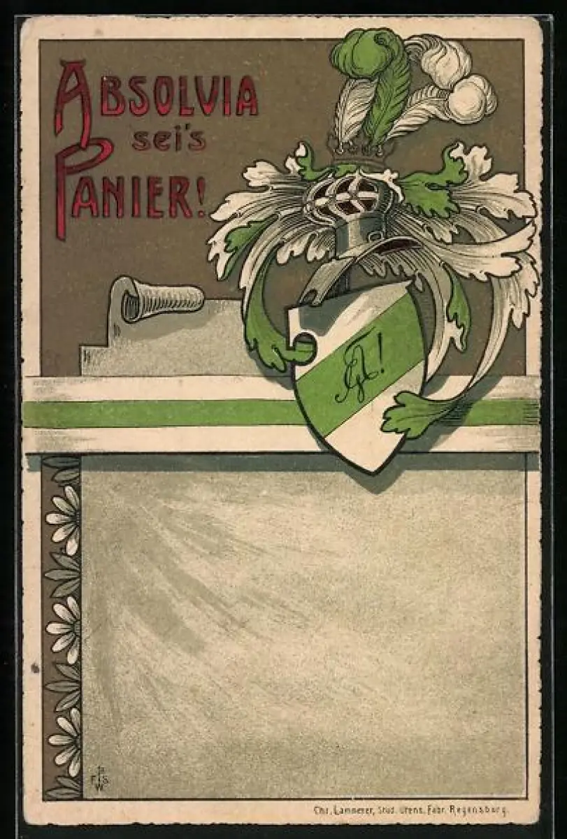 AK Studentenwappen mit Ritterhelm, Absolbia sei`s Panier