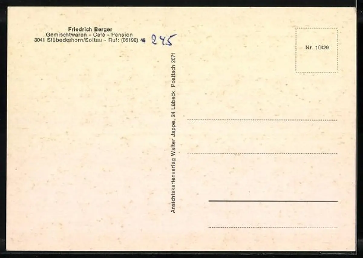 AK Stübeckshorn /Lüneburger Heide, Café und Pension Berger, Inh. Friedrich Berger, Haus Sonnenschein