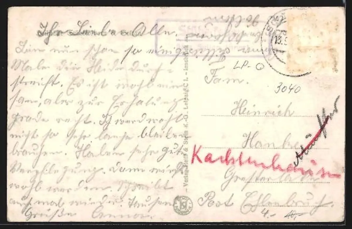 alte Ansichtskarte, gelaufen, Briefmarke entfernt, guter Zustand