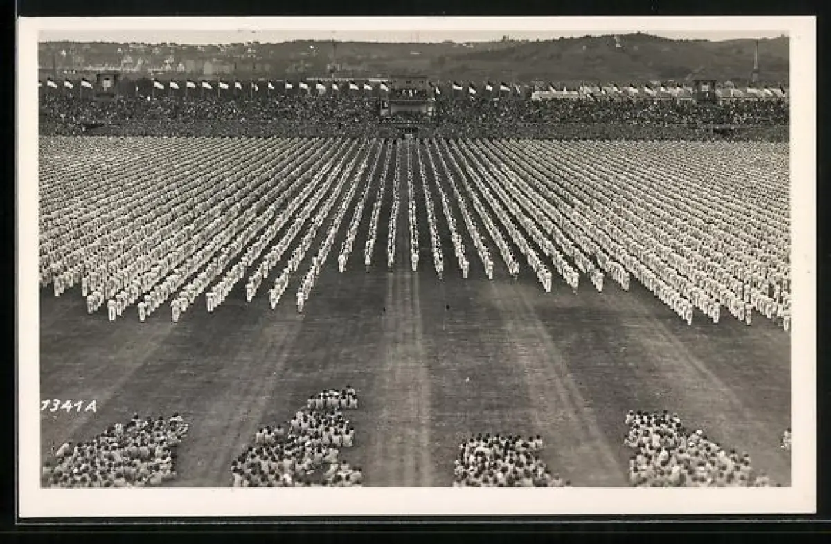 AK Stuttgart, 15. Deutsches Turnfest 1933, Festplatz mit Turnern