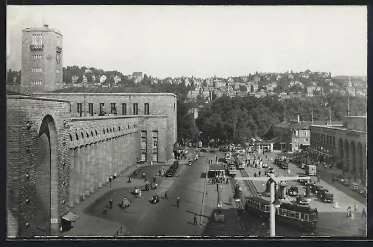 AK Stuttgart, Bahnhof mit Strassenbahn