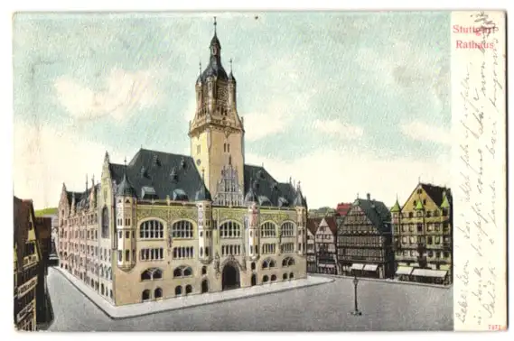 AK Stuttgart, Blick auf das Rathaus mit Vorplatz