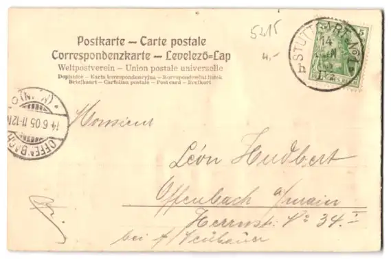 alte Ansichtskarte, gelaufen 1905, Stecknadelloch oben mittig, guter Zustand