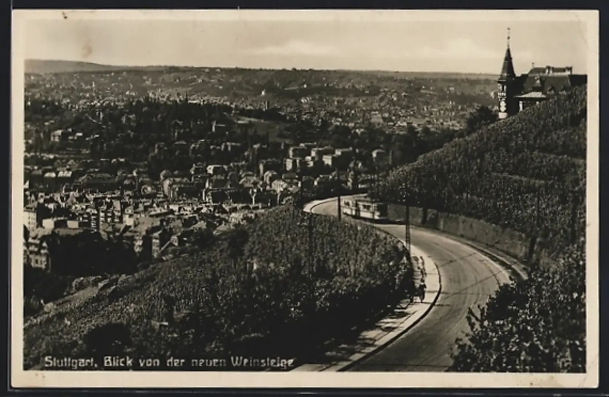 AK Stuttgart, Blick von der neuen Weinsteige mit Strassenbahn